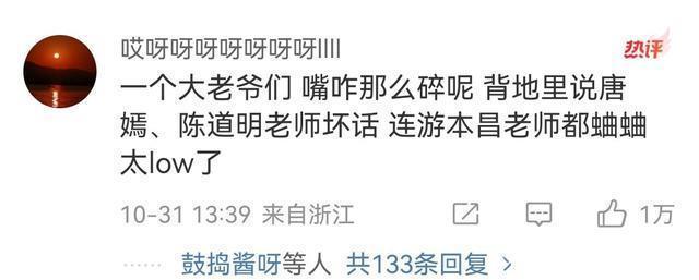这可能就是名导的含金量吧,没拍过几部戏,还真想不出这么歹毒的操作。 多岁的游本昌老爷子,经俩人这么一讨论,也差点晚节不保。 不过是一天发了三条朋友圈,到王家卫嘴里就成了不省油的灯。 听得网友怒气值蹭蹭地长,“一个大老爷们,连游本昌老师也蛐蛐,太low了。”
